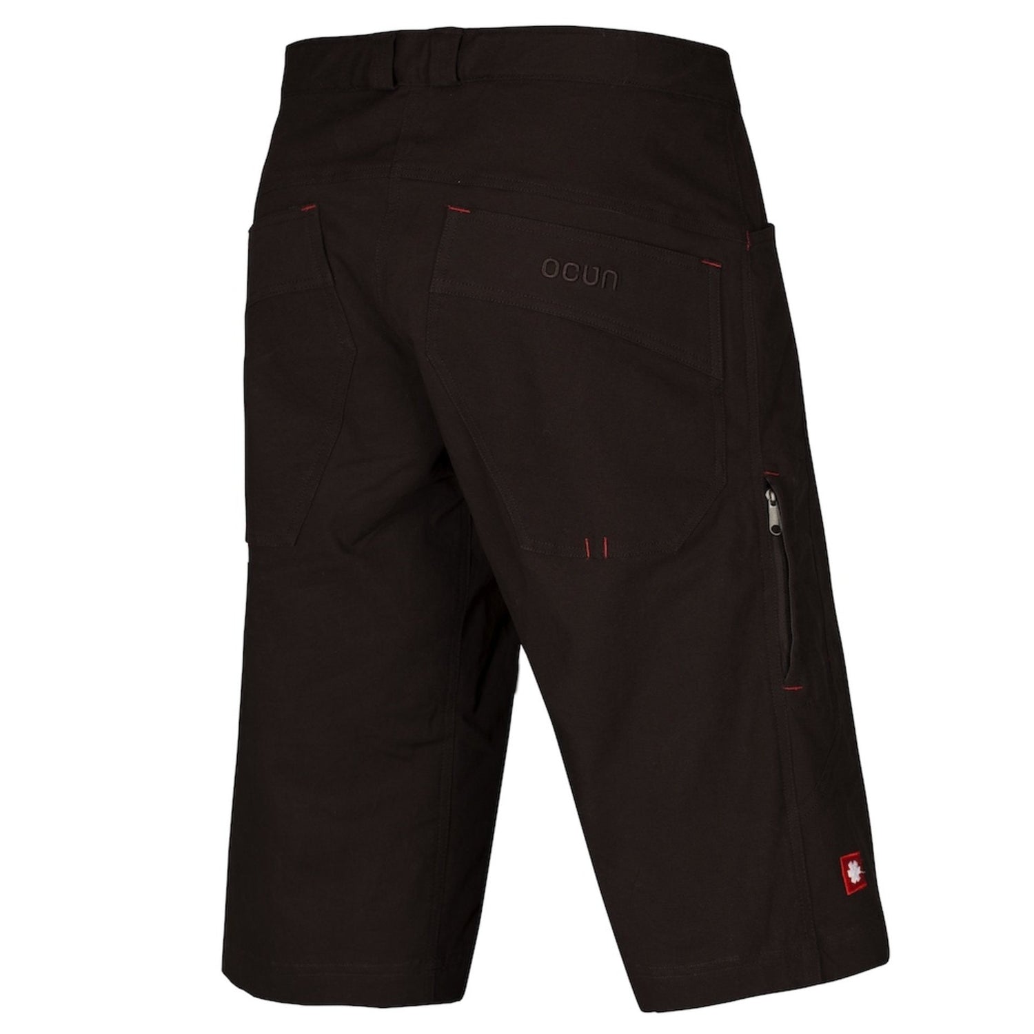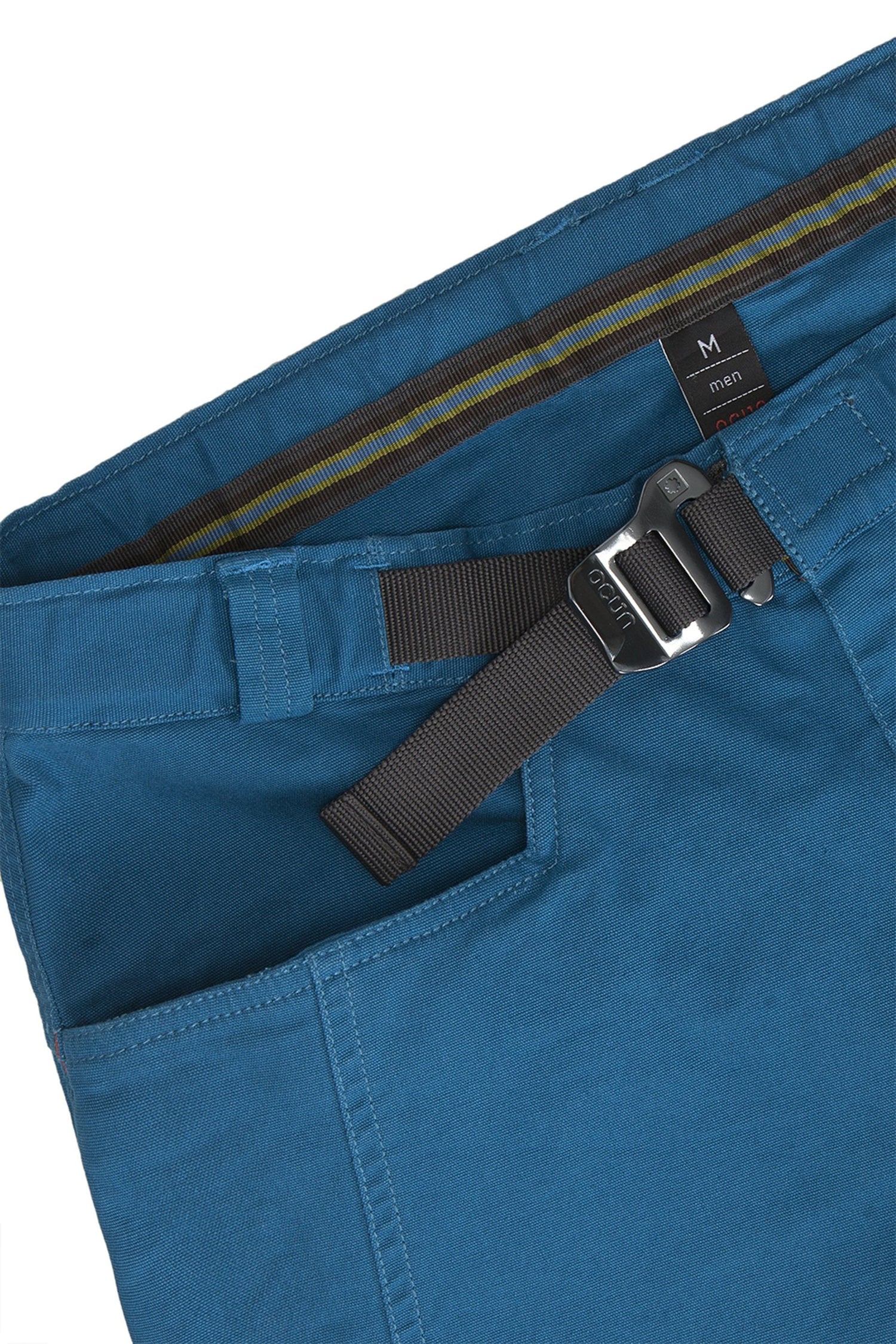 Los pantalones cortos de bocina están hechos de material duradero con estructura de algodón tejido grueso y efecto elástico. El diseño ergonómico permite un rendimiento de escalada sin restricciones. Son transpirables y cómodos al tacto. El "look de trabajo retro" final se ve acentuado por costuras cosidas con hilo fuerte. Los lugares expuestos están asegurados por costuras de colores. Pequeños detalles como el bolsillo de cepillo en el lateral hacen que su uso sea aún más cómodo para escalar.